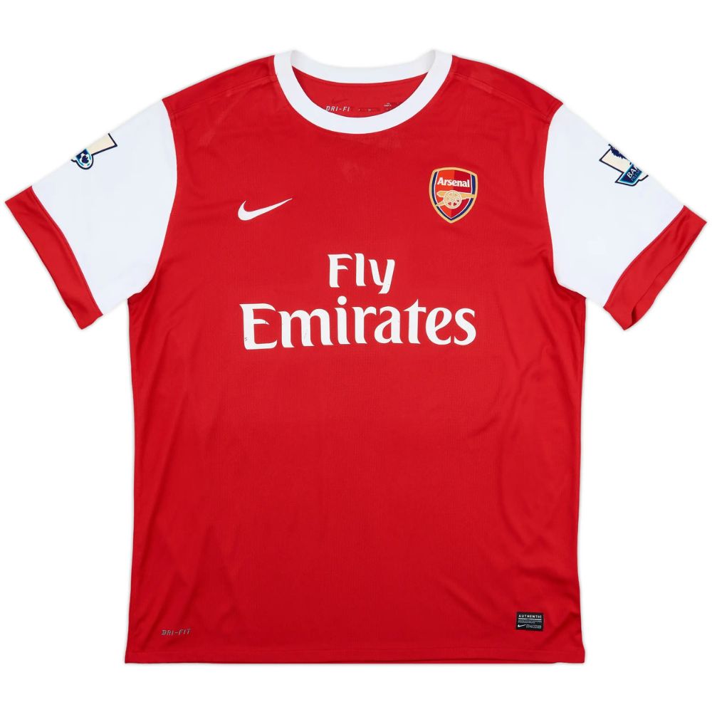La saison 2010-2011 marque un tournant dans l’histoire du club : c’est la dernière année où Fàbregas, capitaine et maestro du milieu de terrain, porte le maillot d’Arsenal. Ce maillot est associé à une période de transition, où l’équipe jeune d’Arsène Wenger continue de briller par son style offensif et technique. Aujourd’hui, il demeure très recherché pour sa simplicité iconique et sa forte valeur émotionnelle.