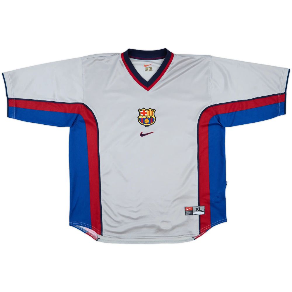 Entre 1998 et 2001, le FC Barcelone vit une période marquante, notamment grâce à l’impact spectaculaire de Rivaldo, Ballon d’Or 1999 et véritable génie offensif. Ce maillot extérieur a accompagné le club lors des grandes soirées européennes, représentant la nouvelle esthétique Nike et les ambitions du Barça. Il reste aujourd’hui fortement associé aux exploits techniques, aux buts mythiques et au charisme unique de Rivaldo, ce qui en fait une pièce recherchée par les collectionneurs.