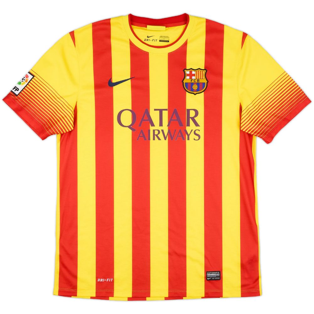 Ce maillot extérieur, utilisé sur deux saisons, est devenu l’un des modèles les plus iconiques de l’équipe catalane en raison de son lien profond avec la culture régionale. Adoptant les couleurs de la Senyera, il symbolise fierté, héritage et engagement identitaire. Porté par Fàbregas lors de ses dernières années au club, il représente un moment clé de l’histoire du collectif, où tradition et modernité se rejoignent dans une esthétique audacieuse et mémorable.