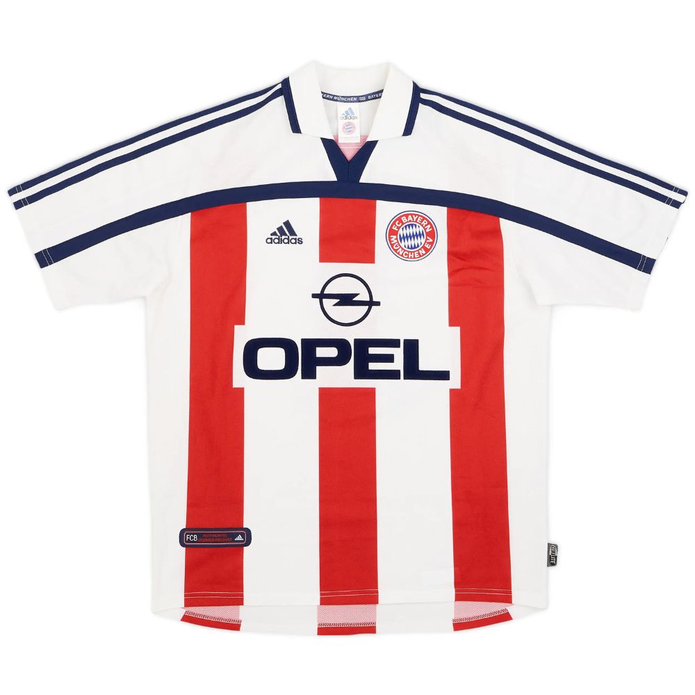 Le maillot retro vintage exterieur du Bayern Munich pour la saison 2000-2001 avec le flocage Elber est une pièce emblématique du début des années 2000. Associé à une saison historique conclue par un sacre européen, ce maillot blanc à rayures rouges verticales symbolise l’élégance et la puissance du Bayern Munich lors de ses déplacements, tout en mettant à l’honneur l’un de ses attaquants les plus marquants.