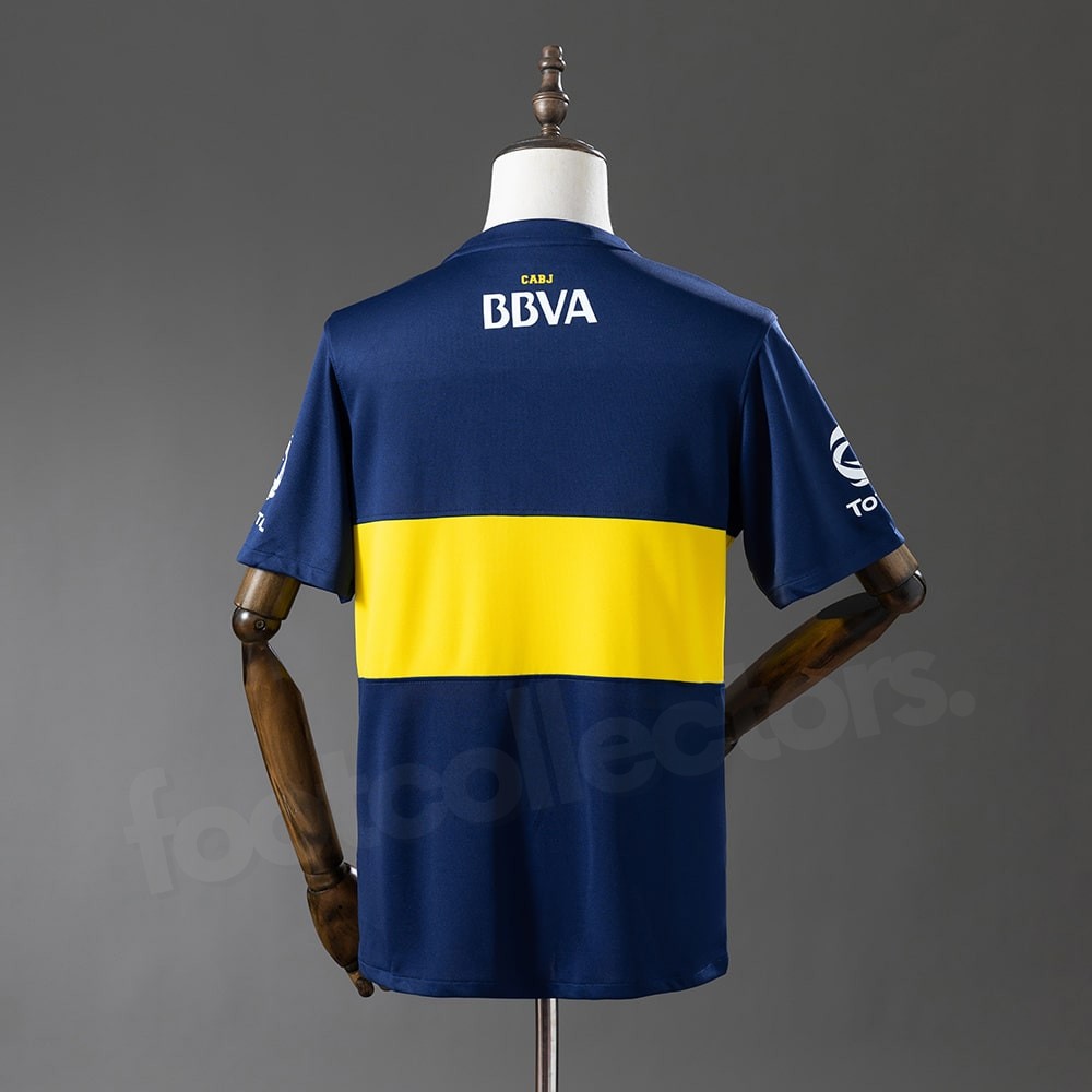 Coloris : bleu marine profond avec la large bande horizontale jaune or emblématique du Boca Juniors.