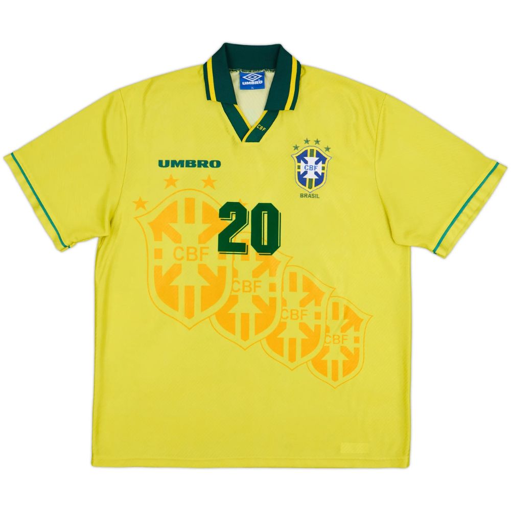 Le maillot retro vintage domicile du Brésil pour la saison 1994 est l’un des modèles les plus iconiques de l’histoire du football mondial. Associé au sacre brésilien lors de la Coupe du Monde 1994 aux États-Unis, ce maillot jaune éclatant est indissociable des débuts internationaux de Ronaldo, alors jeune prodige promis à un destin exceptionnel. Il incarne à la fois la tradition de la Seleção et l’élégance du football brésilien des années 90.