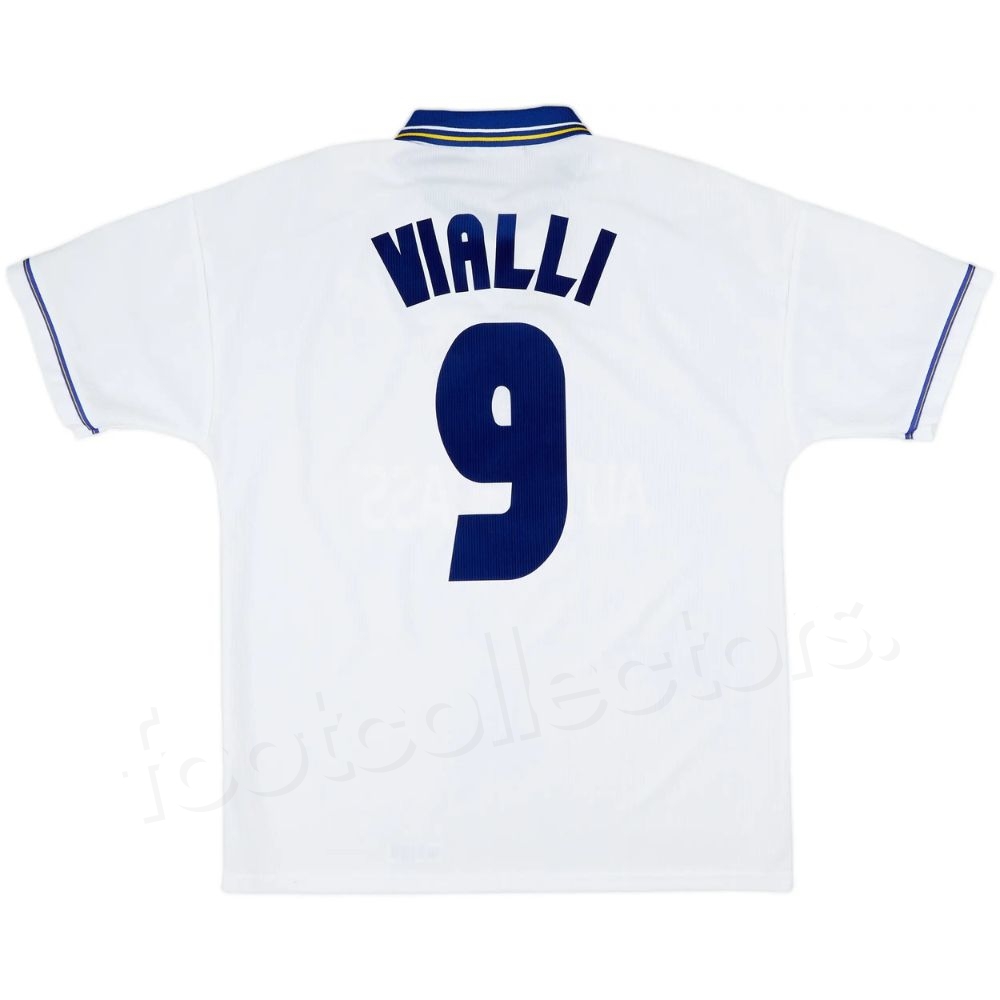 • Flocage Vialli et numéro 9 au dos en bleu foncé, style Premier League de l’époque