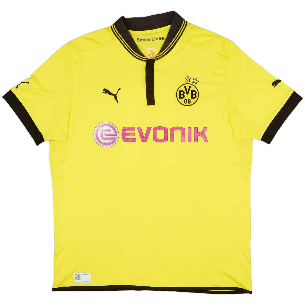 La saison 2012-2013 restera gravée dans l’histoire du Borussia Dortmund avec une finale de Ligue des Champions disputée à Wembley. Marco Reus, fraîchement arrivé au club, s’impose rapidement comme l’un des joueurs clés de l’effectif grâce à sa vitesse, sa créativité et sa capacité à faire la différence dans les grands matchs. Ce maillot domicile incarne cette période intense et passionnante, marquée par l’enthousiasme et le football offensif prôné par Jürgen Klopp.