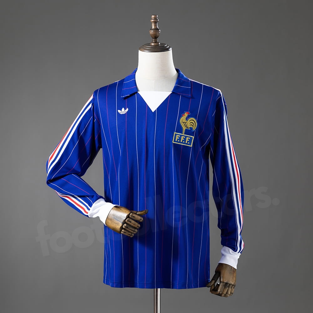 Le maillot retro vintage domicile de l’Équipe de France pour la période 1980-1982 manches longues est une pièce emblématique du football français. Avec son design classique et ses fines rayures verticales, il incarne parfaitement l’élégance et l’authenticité des maillots des années 80, tout en mettant en avant l’identité forte des Bleus.