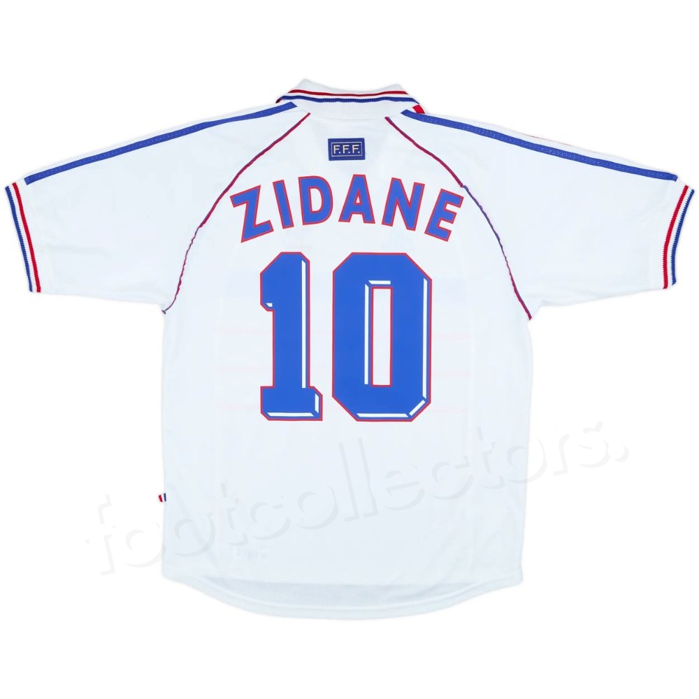 Le maillot retro vintage exterieur de l’Equipe de France pour l’année 1998 avec le flocage Zidane est une pièce mythique de l’histoire du football mondial. Porté lors de la Coupe du monde 1998 remportée à domicile, ce maillot blanc incarne l’élégance, la maîtrise et le génie de Zinedine Zidane, figure centrale du sacre français et symbole d’une génération dorée.
