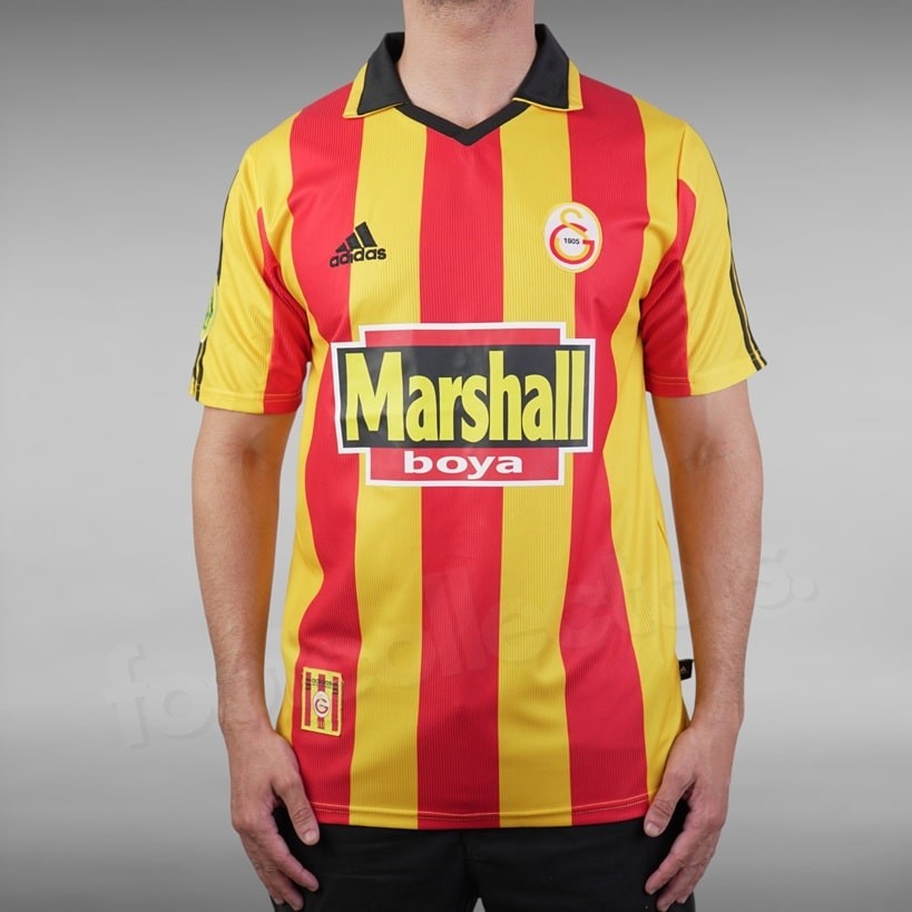 Ce maillot est entré dans la légende en 1999-2000, saison au cours de laquelle Galatasaray, dirigé par Fatih Terim et emmené par des joueurs comme Hagi, Jardel, Taffarel et Popescu, réalise un exploit historique.