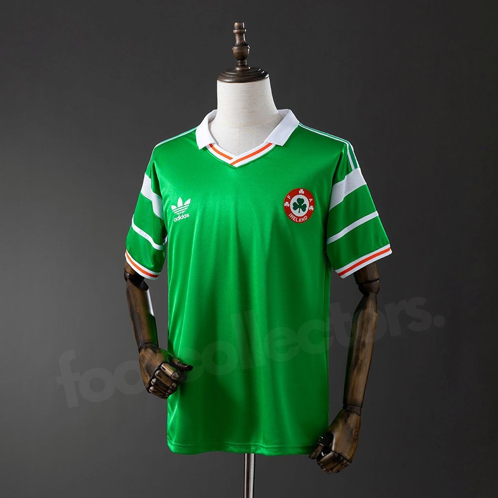 Ce maillot représente une période historique pour l’Irlande, notamment marquée par l’Euro 1988, première qualification majeure de l’équipe nationale. Sous la direction de Jack Charlton, la sélection irlandaise gagne en respect sur la scène européenne, portée par des joueurs emblématiques tels que Paul McGrath, Ronnie Whelan ou Ray Houghton. Ce maillot reste associé à l’émergence d’une génération dorée et à l’explosion de la popularité du football en Irlande.