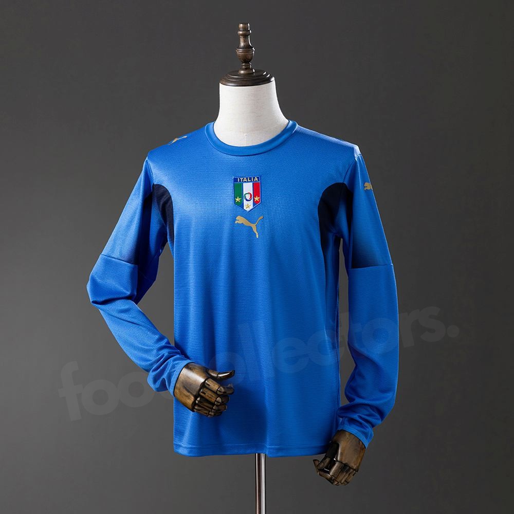 Porté par des icônes telles que Fabio Cannavaro, Gianluigi Buffon, Andrea Pirlo, Francesco Totti et Marco Materazzi, ce maillot symbolise l’excellence tactique et la solidarité d’un groupe uni. La version manches longues, portée par plusieurs titulaires, reste aujourd’hui un trésor pour les collectionneurs et les passionnés de football vintage.