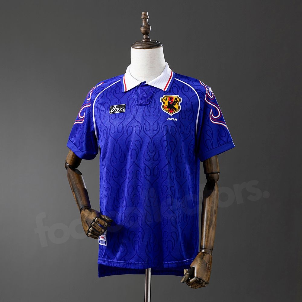 Ce maillot est celui qui accompagne le Japon lors de sa première Coupe du Monde, en 1998. Une année historique où l’équipe menée par des talents comme Hidetoshi Nakata, Kazu Miura (dans le parcours qualificatif), et Masashi Nakayama pose les bases du football moderne japonais.