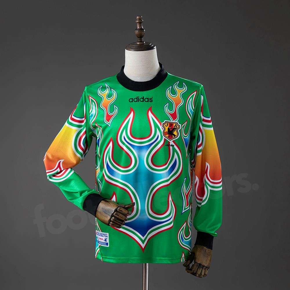Le maillot gardien de but du Japon 1998 est une pièce absolument unique et spectaculaire dans l’univers des maillots de football. Avec ses flammes multicolores explosant sur un fond vert vif, ce maillot de gardien incarne l’audace créative d’Adidas à la fin des années 90 et la montée en puissance du football japonais sur la scène mondiale. Flamboyant, iconique et collector, il reste à ce jour l’un des maillots de gardien les plus reconnaissables de l’histoire du football.