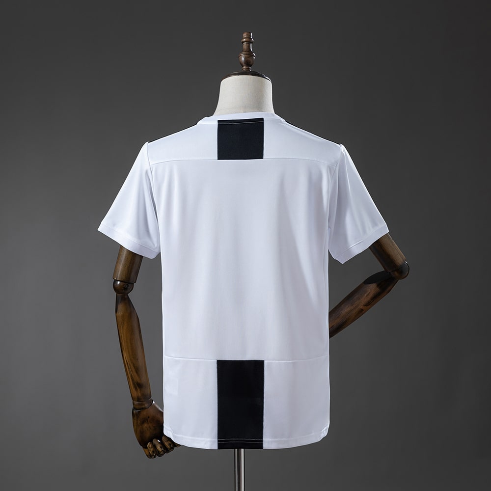 Le maillot retro vintage domicile de la Juventus pour la saison 2018-2019 marque une évolution notable dans l’identité visuelle du club turinois. Tout en conservant les emblématiques rayures noires et blanches, ce modèle adopte un design revisité avec des bandes verticales asymétriques, symbolisant la modernisation du club à l’ère contemporaine. Il incarne l’élégance, la puissance et la culture de la victoire propres à la Juventus.