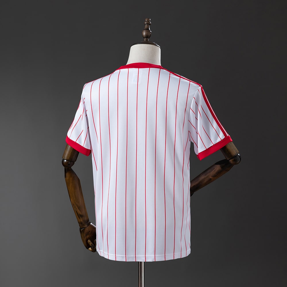 La saison 1982-1983 représente une période marquante pour le FC Koln, alors l’un des clubs les plus compétitifs d’Allemagne. Ce maillot domicile illustre parfaitement la mode footballistique de ces années : designs minimalistes, motifs fins et sponsors très identifiables. Sa silhouette simple et ses détails emblématiques en font aujourd’hui un modèle très recherché par les passionnés de maillots rétro.