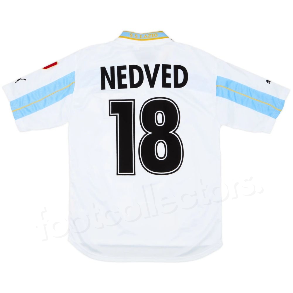 La saison 1999-2000 est historique pour la Lazio, couronnée championne d’Italie au terme d’un championnat intense. Pavel Nedved, moteur du milieu de terrain, se distingue par son volume de jeu, sa puissance et son engagement constant. Ce maillot domicile est indissociable de ce Scudetto légendaire et incarne l’esprit combatif et ambitieux de la Lazio de la fin des années 90.
