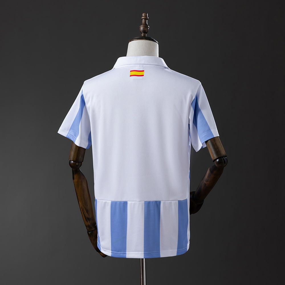 Le maillot retro vintage domicile du Malaga CF pour la saison 2012-2013 est une pièce emblématique de l’une des plus belles périodes de l’histoire du club andalou. Conçu par Nike, il allie élégance et sobriété, avec ses bandes bleu ciel et blanches rappelant l’identité historique du club. Ce maillot est notamment resté dans les mémoires pour avoir accompagné Malaga lors de sa remarquable campagne en Ligue des Champions, marquée par un parcours héroïque jusqu’aux quarts de finale.