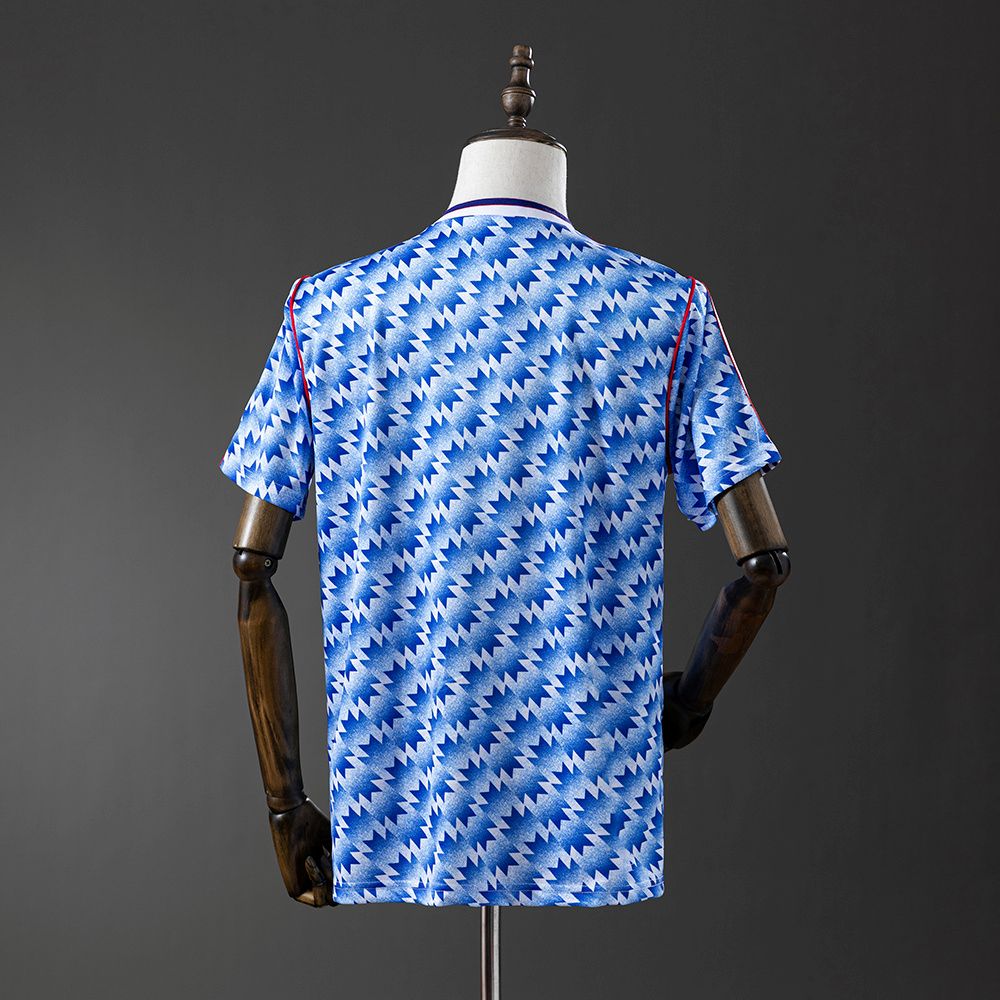 Le maillot retro vintage extérieur de Manchester United 1990-1992 est l’un des modèles les plus iconiques de l’histoire du club. Son motif bleu électrique à zigzags est devenu une véritable référence du design footballistique des années 90. Aujourd’hui encore, il est considéré comme un classique absolu, très recherché par les collectionneurs et les fans de vintage.