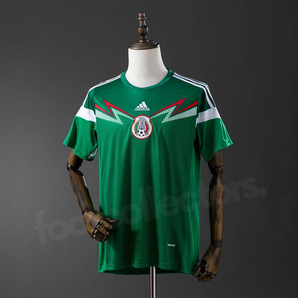 Le maillot retro vintage domicile du Mexique 2014 est l’une des pièces modernes les plus marquantes de la sélection aztèque. Conçu par adidas, il mise sur un vert éclatant associé à un motif géométrique audacieux au niveau de la poitrine, inspiré du dynamisme et de la puissance de l’aigle mexicain. Ce design percutant donne au maillot une identité forte, immédiatement reconnaissable pendant la Coupe du Monde 2014 au Brésil.