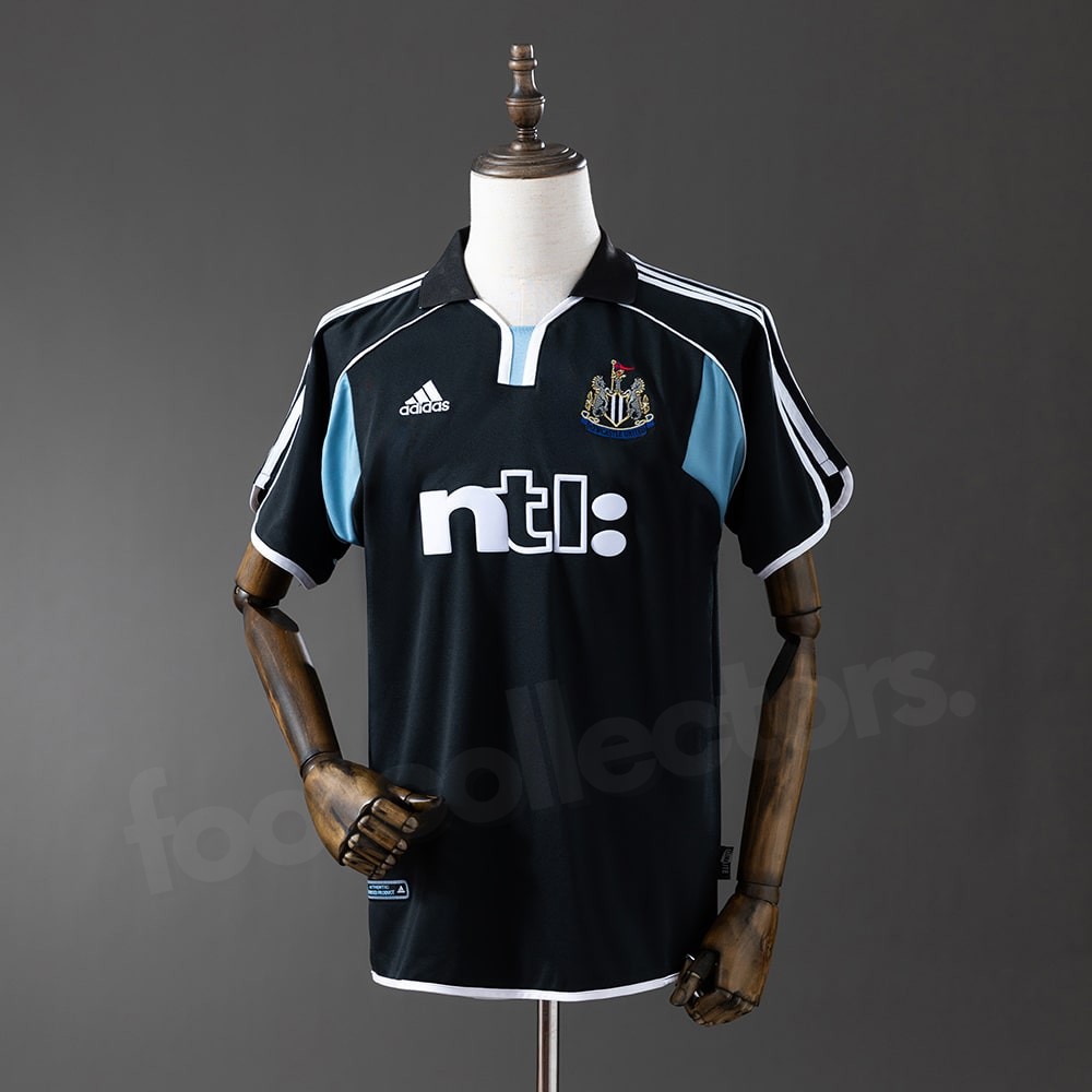 Le maillot retro vintage extérieur de Newcastle United pour la saison 2000-2001 est un classique sobre et élégant signé Adidas. Avec son design noir rehaussé de touches bleu clair et blanches, il incarne la modernité du début des années 2000 tout en conservant la forte identité visuelle du club.
