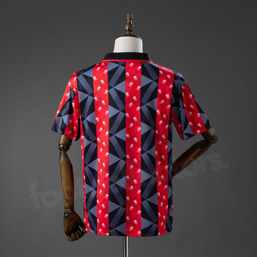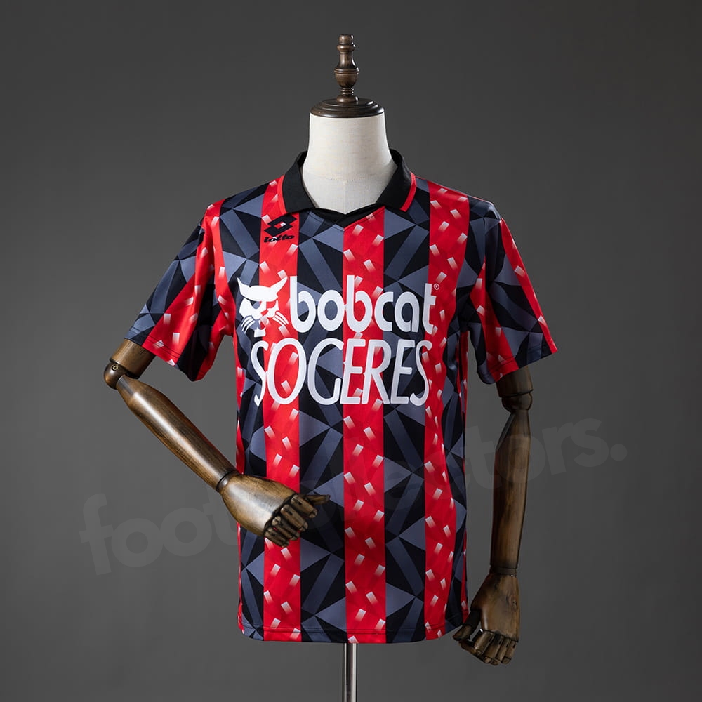 Le maillot retro vintage de l’OGC Nice domicile pour la saison 1993-1994 est une pièce audacieuse qui incarne parfaitement l’esthétique marquante des années 90. Avec ses bandes rouges et noires associées à un motif graphique géométrique, ce maillot reflète toute la créativité et l’identité du club niçois.