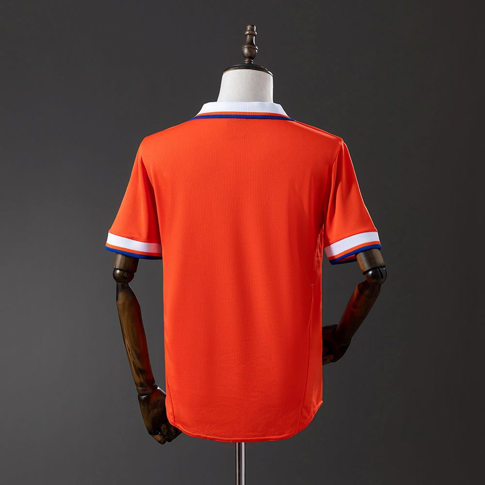 Ce maillot est associé à une génération légendaire : Bergkamp, Kluivert, Davids, Seedorf, Overmars, Stam… Les Pays-Bas réalisent un parcours exceptionnel à la Coupe du Monde 1998 en atteignant les demi-finales, offrant au public certains des plus beaux matchs du tournoi.