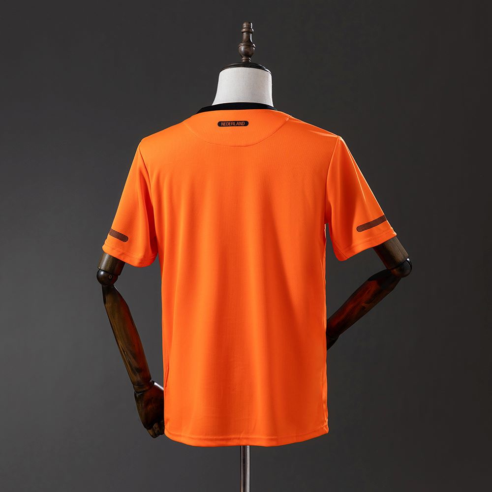 Ce maillot restera à jamais associé à la Coupe du Monde 2010, où les Pays-Bas, menés par Bert van Marwijk, réalisent un parcours exceptionnel. Avec des joueurs comme Wesley Sneijder, Arjen Robben, Robin van Persie ou encore Dirk Kuyt, la sélection néerlandaise enchaîne les prestations solides et atteint la troisième finale mondiale de son histoire. Le duel face à l’Espagne restera l’un des matchs les plus intenses du tournoi. Ce maillot incarne donc un mélange de rigueur, de talent et de résilience.