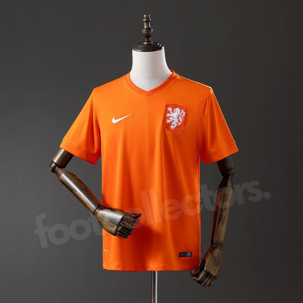 Ce maillot est principalement associé à la Coupe du Monde 2014 au Brésil et à la saison internationale suivante. Les Pays-Bas, dirigés par Louis van Gaal, y ont réalisé un parcours exceptionnel, marqué par la victoire 5-1 contre l’Espagne et par la demi-finale qu’ils atteindront après une séance de tirs au but restée célèbre grâce à l’entrée stratégique du gardien Tim Krul. Des joueurs comme Arjen Robben, Robin van Persie, Wesley Sneijder et Memphis Depay ont contribué à faire de ce maillot une pièce symbolique, associée à l’un des meilleurs parcours modernes de l’équipe néerlandaise.