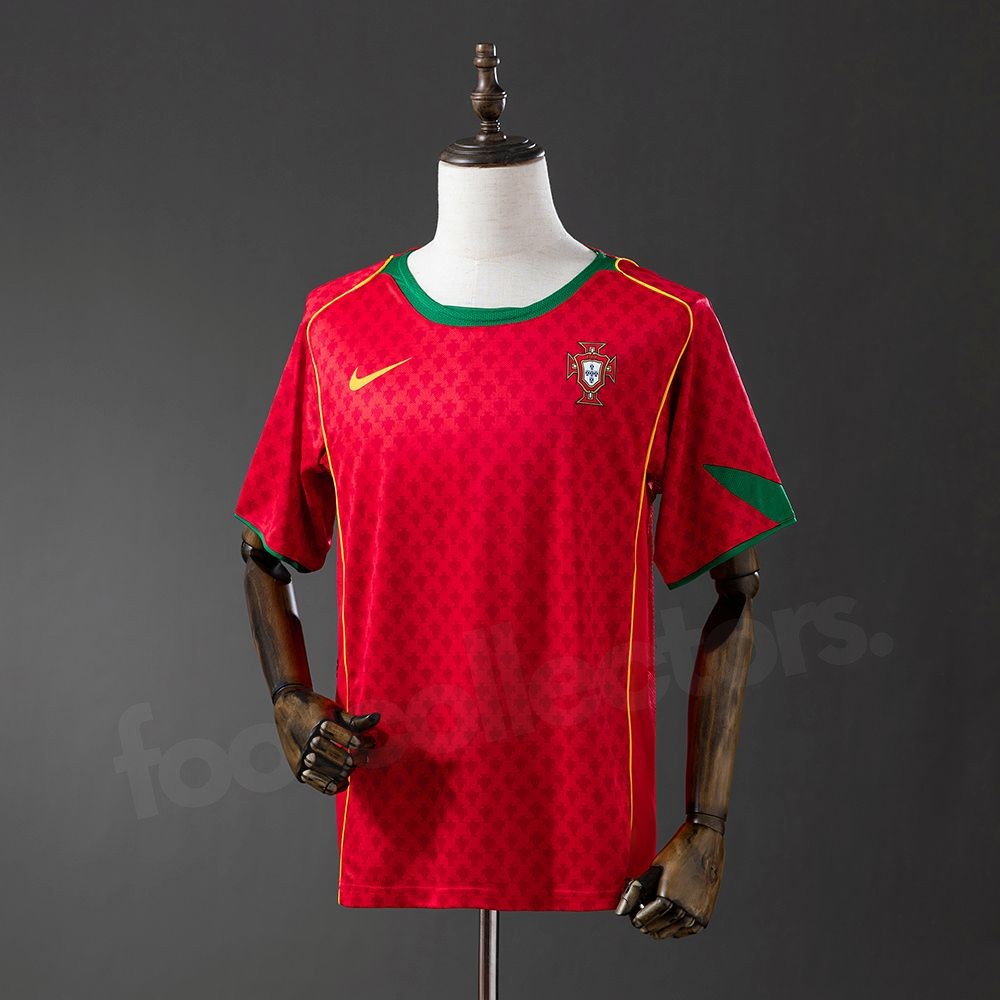 Ce maillot est étroitement lié à l’épopée mémorable de l’Euro 2004, où le Portugal, porté par Luís Figo, Cristiano Ronaldo, Rui Costa et Deco, atteint la finale devant son public. Malgré une issue cruelle face à la Grèce, cette période reste gravée comme l’une des plus marquantes de l’histoire du football portugais. Le maillot est également utilisé durant les qualifications pour la Coupe du Monde 2006, renforçant son aura historique auprès des supporters.