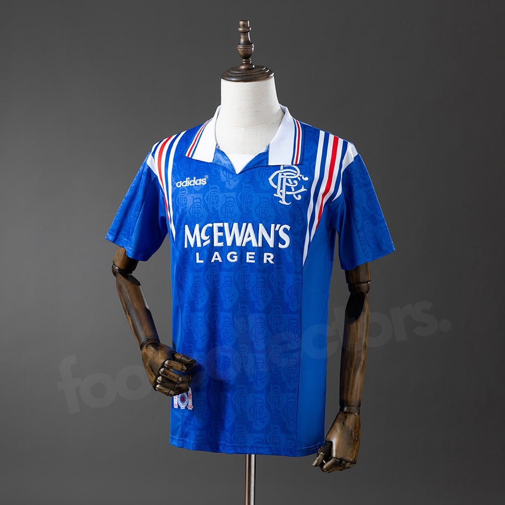 La saison 1996-1997 s’inscrit dans l’une des périodes les plus dominantes de l’histoire des Rangers, portés par une équipe talentueuse et un effectif capable d’enchaîner les succès en championnat écossais. Ce maillot domicile, reconnaissable à son motif jacquard et à ses bandes tricolores, a marqué les esprits des supporters. Il symbolise la puissance des Gers dans les années 90 et l’esthétique très travaillée d’Adidas durant cette décennie.