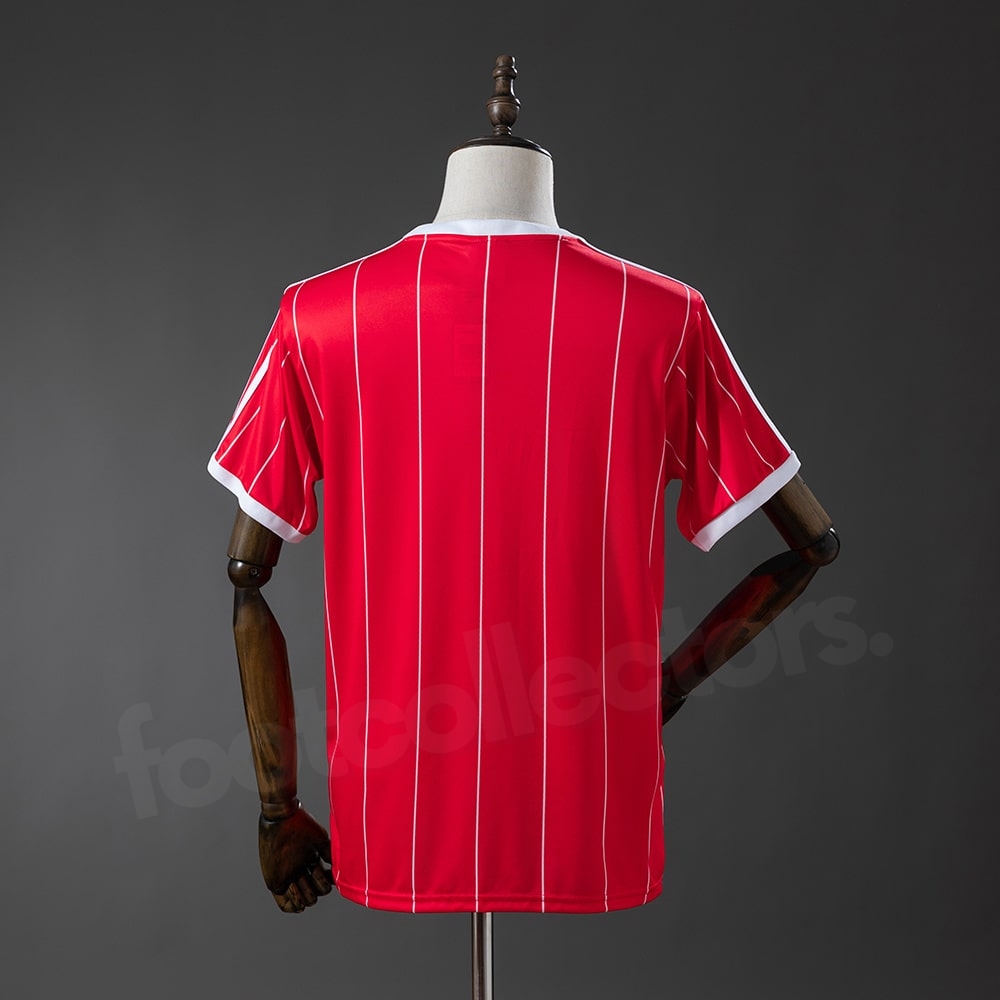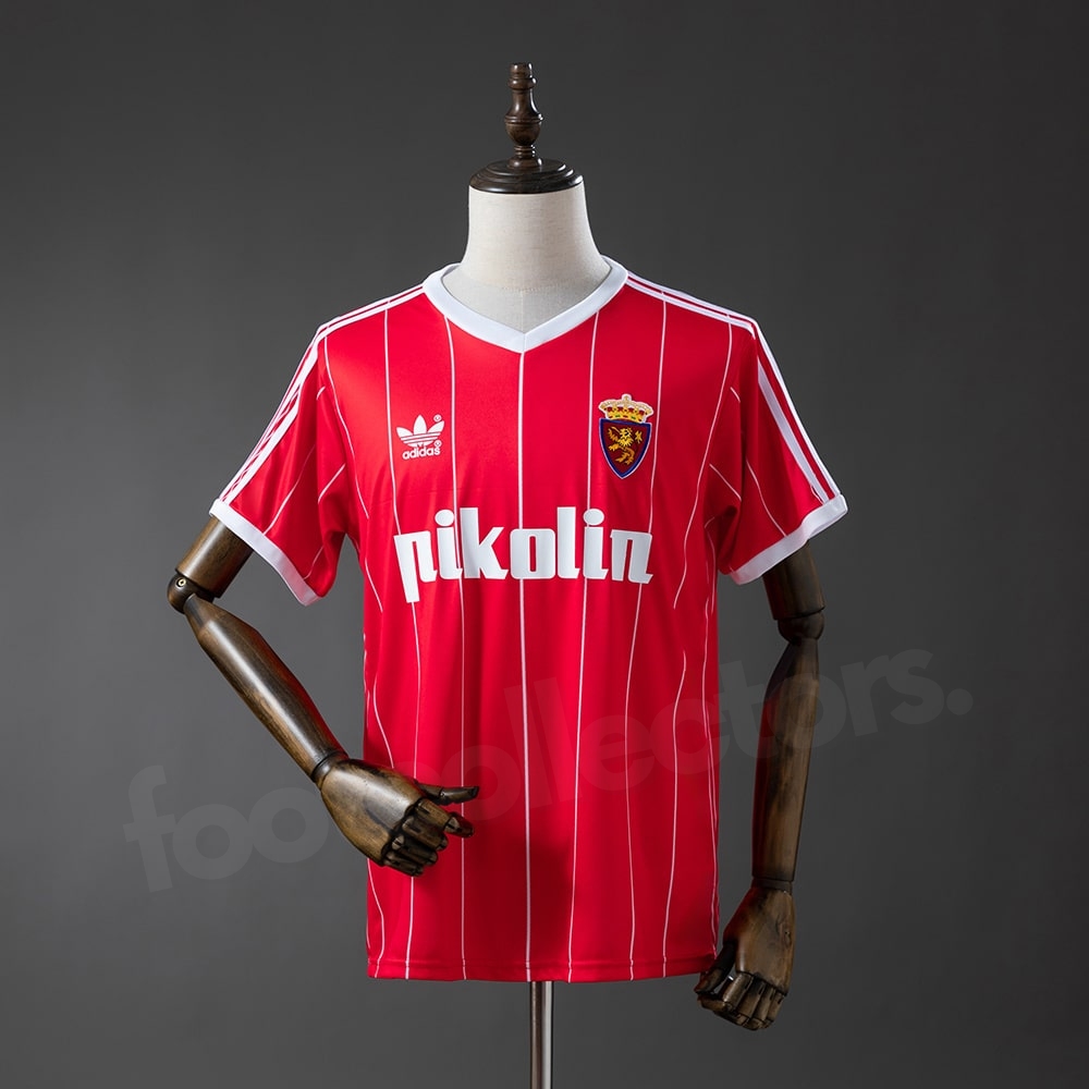 La saison 1983-1984 marque une période importante pour le Real Zaragoza, alors solidement installé parmi les clubs compétitifs du football espagnol. Ce maillot extérieur a été porté lors de nombreuses rencontres de Liga, incarnant le sérieux et l’ambition du club à l’échelle nationale. Son design rouge à rayures verticales, caractéristique de l’esthétique Adidas des années 80, en fait aujourd’hui une pièce recherchée par les amateurs de maillots rétro espagnols.