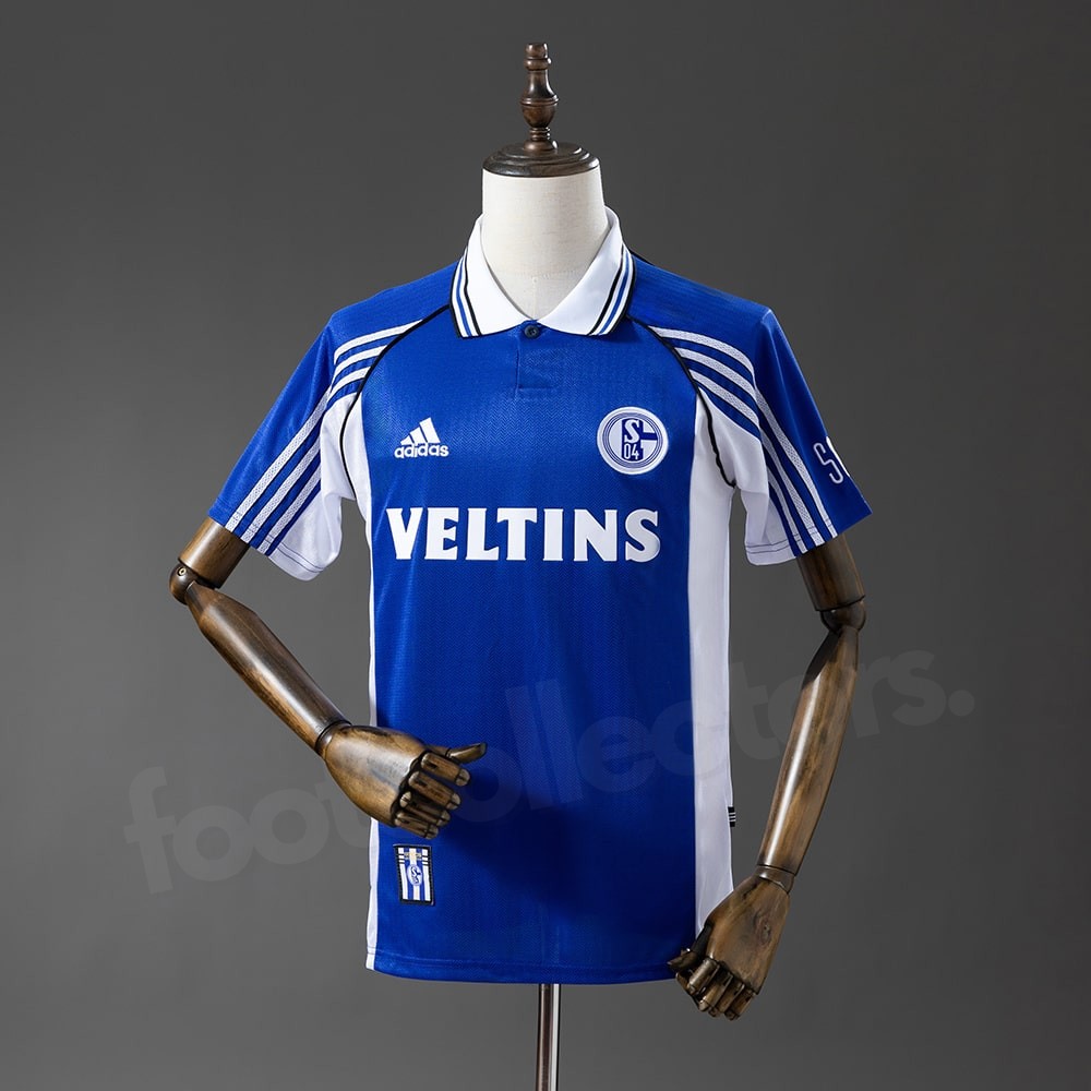 Le maillot retro vintage domicile de Schalke 04 pour les saisons 1998-2000 est un modèle emblématique de l’ère adidas, reconnaissable à son bleu royal profond, son design moderne pour l’époque et son sponsor historique Veltins. Avec ses épaules texturées et ses bandes blanches contrastées, il incarne la transition stylistique de la fin des années 90 vers une esthétique plus contemporaine. Un maillot apprécié par les supporters pour son élégance et son identité forte.