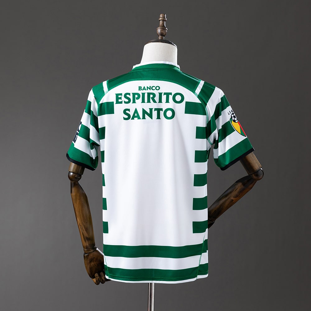 Le maillot retro vintage domicile du Sporting Lisbonne pour la saison 2003-2004 est une pièce emblématique de l’ère Reebok, reconnaissable à ses célèbres bandes horizontales vert foncé et blanches. Cette version moderne du design traditionnel du club met en avant une construction plus contemporaine, un col structuré et le sponsor PT, très caractéristique des années 2000. Il s’agit d’un modèle apprécié pour sa fidélité à l’identité du Sporting tout en apportant une touche de fraîcheur et de dynamisme.