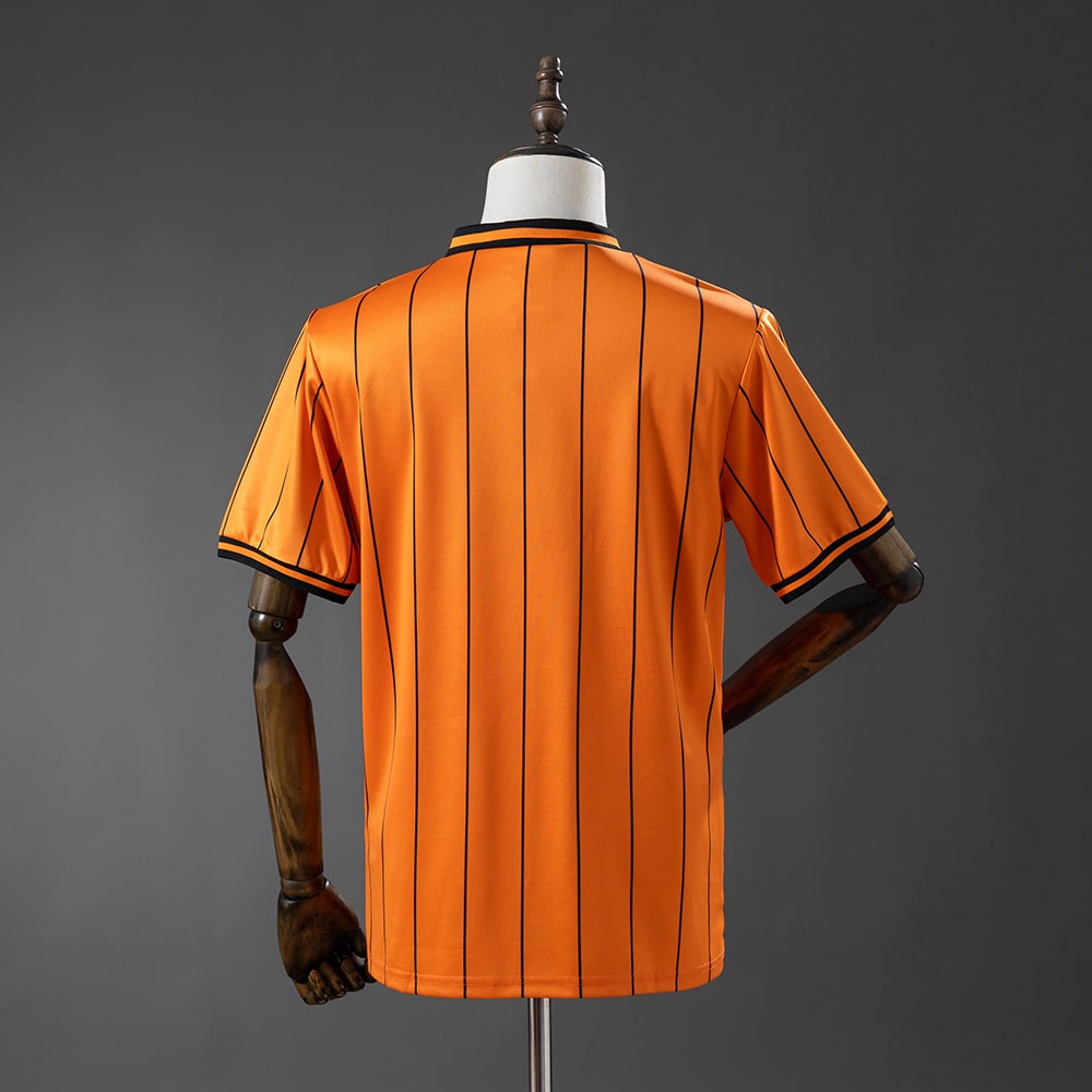 Le maillot retro vintage domicile de Wolverhampton pour la saison 1985-1986 incarne le style emblématique et l’identité forte des Wolves au milieu des années 80. Fidèle aux couleurs historiques du club, ce modèle arbore un orange vif iconique, rehaussé de fines rayures verticales noires qui apportent élégance et caractère. Conçu par Umbro, ce maillot reflète parfaitement l’esthétique footballistique britannique de l’époque, mêlant simplicité, tradition et efficacité visuelle.